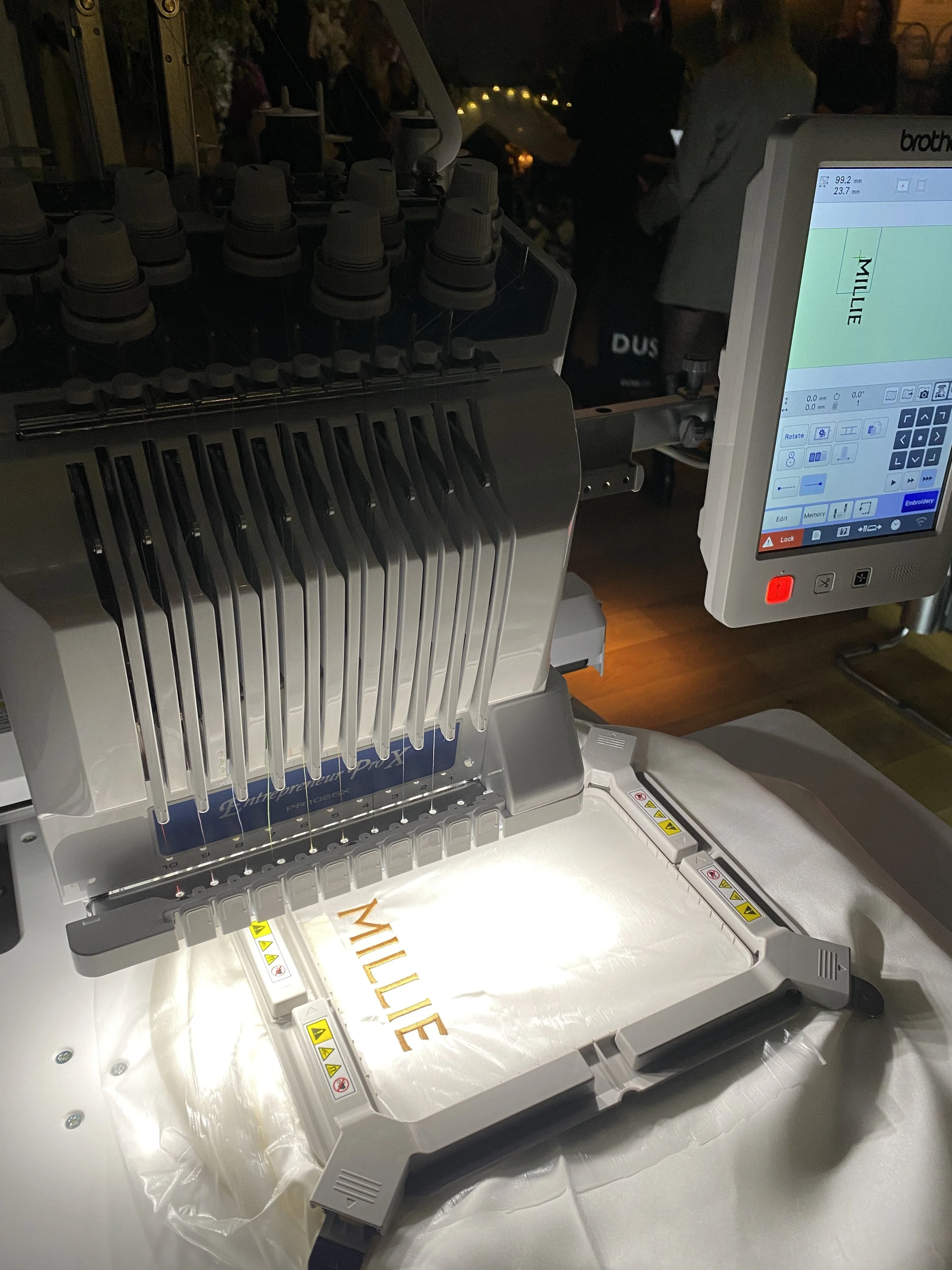 We bring our embroidery equipment and heat presses out to personalise items at live events, as well as in-house garments